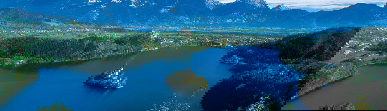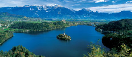 Het Meer van Bled is een prachtig meer in de regio Gorenjska tussen de bergketen Karawanken en de hoge bergtoppen van de Julische Alpen in het noordwesten van Slovenië bij de plaats Bled.
