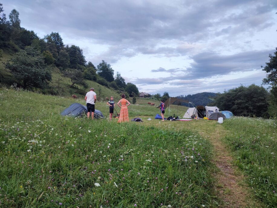 Deze natuurcamping met Nederlandse eigenaren in Lažiše in het oosten van Slovenië ligt in een zonnige groene vallei vlak bij een kabbelende beek en omgeven door heuvels en bos. Hier dompel je je onder in pure natuurbeleving met tentenveldjes die verspreid liggen tussen fruitbomen, open weides en schaduwrijke plekken langs het water. De stilte wordt af en toe doorbroken door uilen en grazende koeien op de omliggende hellingen en de heldere sterrenhemel maakt de avonden extra bijzonder. Je vindt er een buitendouche op zonnewarmte, een warme binnendouche, stromend water, een composttoilet, meerdere zitplekken en een vuurplaats waar je kunt genieten van knisperend houtvuur. Kinderen spelen in het gras en op warme dagen wordt het kleine opzetzwembad gevuld voor verfrissend plezier. Auto’s blijven buiten het terrein zodat het kamperen echt voelt als terugkeren naar de natuur.